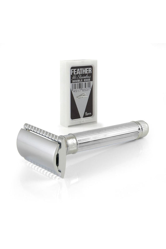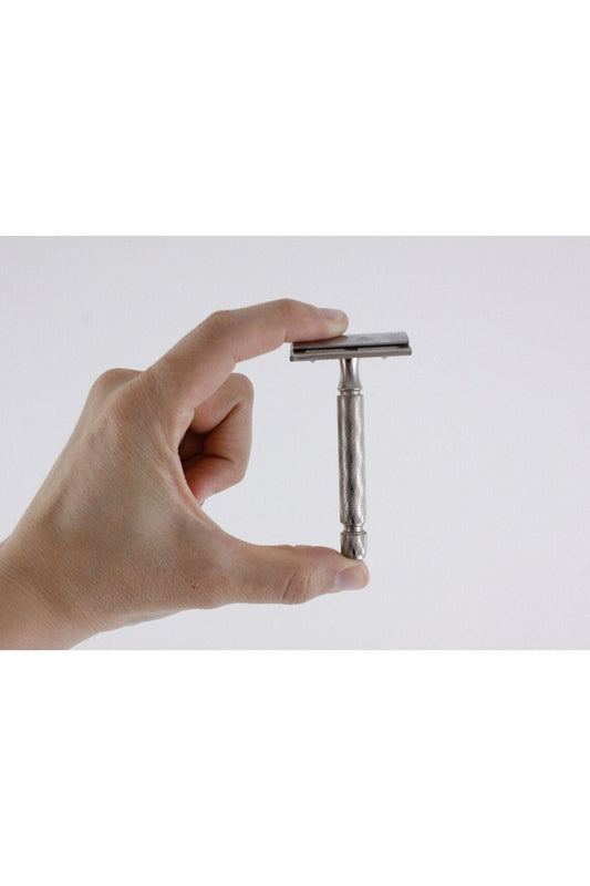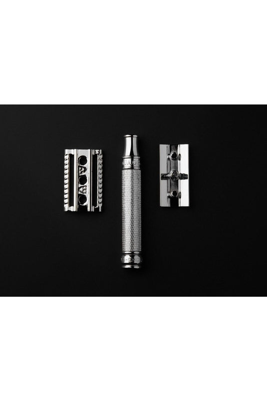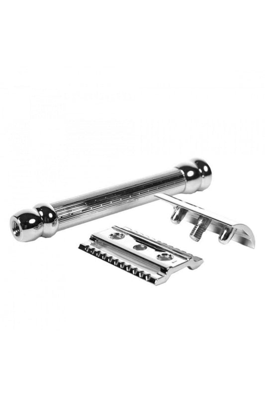 45r Ahşap Görünümlü Krom Artdeco Tıraş Makinesi Üç Parçalı Krom Çift Kenarlı Tıraş Bıçağı