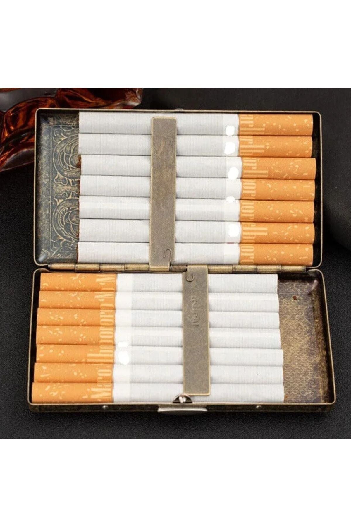 - Uzun Sigara Tabakası Kutusu Retro Tasarım Çift Taraflı Tabla Saklama Kutusu ST-103 Metal 103 mm