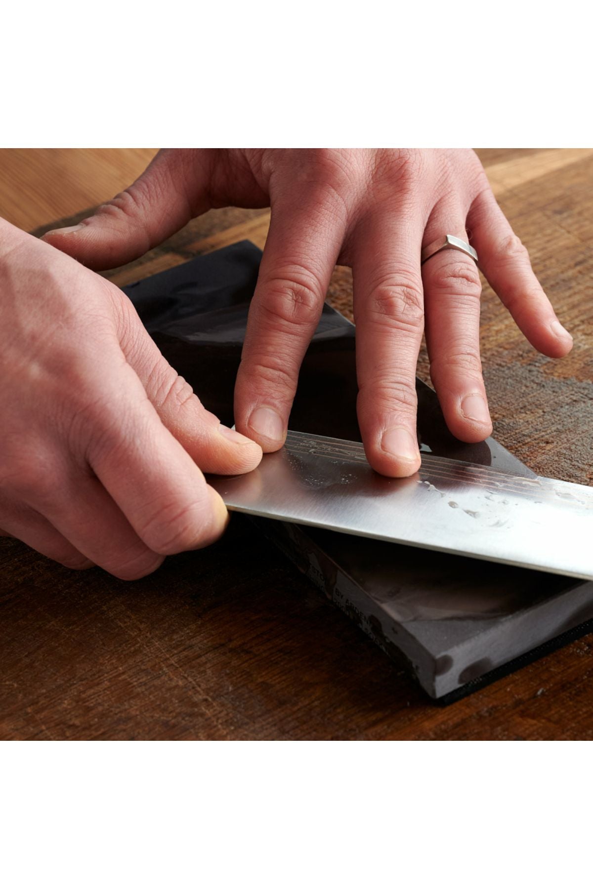 - Bulamacın kalınlığını azaltarak, yavaş yavaş daha fazla su ekleyerek ve kullanılan basınç miktarını azaltarak daha da ince bir bileme elde edebilirsiniz. Sonunda bulamaç, taş yüzeyinde yalnızca suyun bulunacağı noktaya kadar inceltilir. Taşın yüzeyinde serbestçe yuvarlanan garnetlerin sayısı azaldıkça, tek tek parçacıklar o kadar derinden ısıramaz. Bu noktada, taşın kenarına neredeyse hiç aşağı doğru baskı uygulanmadığında sonuç, metal üzerinde ayna kalitesinde bir yüzey elde edilir.
