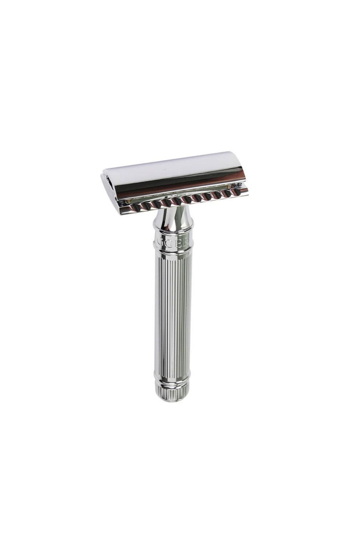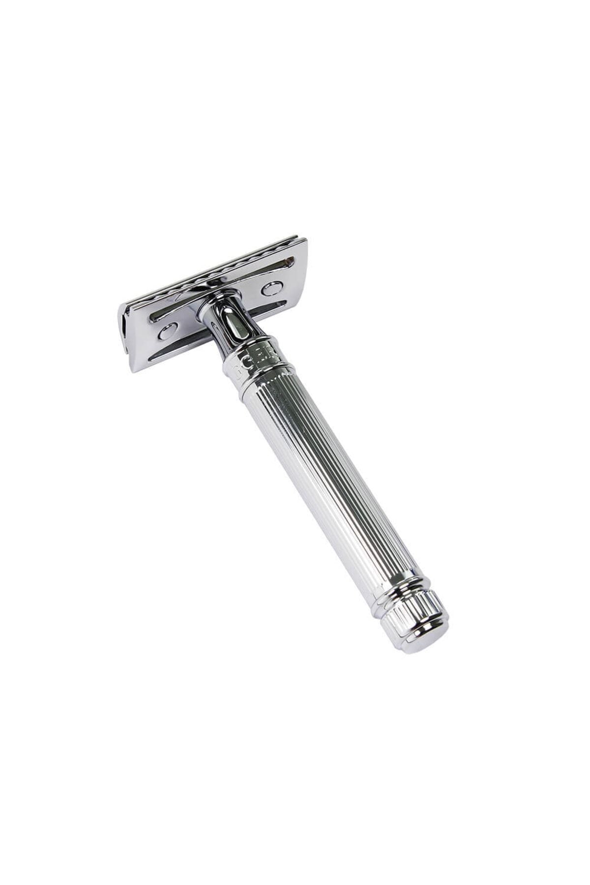 - Edwin Jagger DE89 LBL Çizgili Krom Kaplama Saplı Jiletli Sakal Tıraş Makinesi Krom Kaplama Geleneksel Tıraş İngiliz Malı