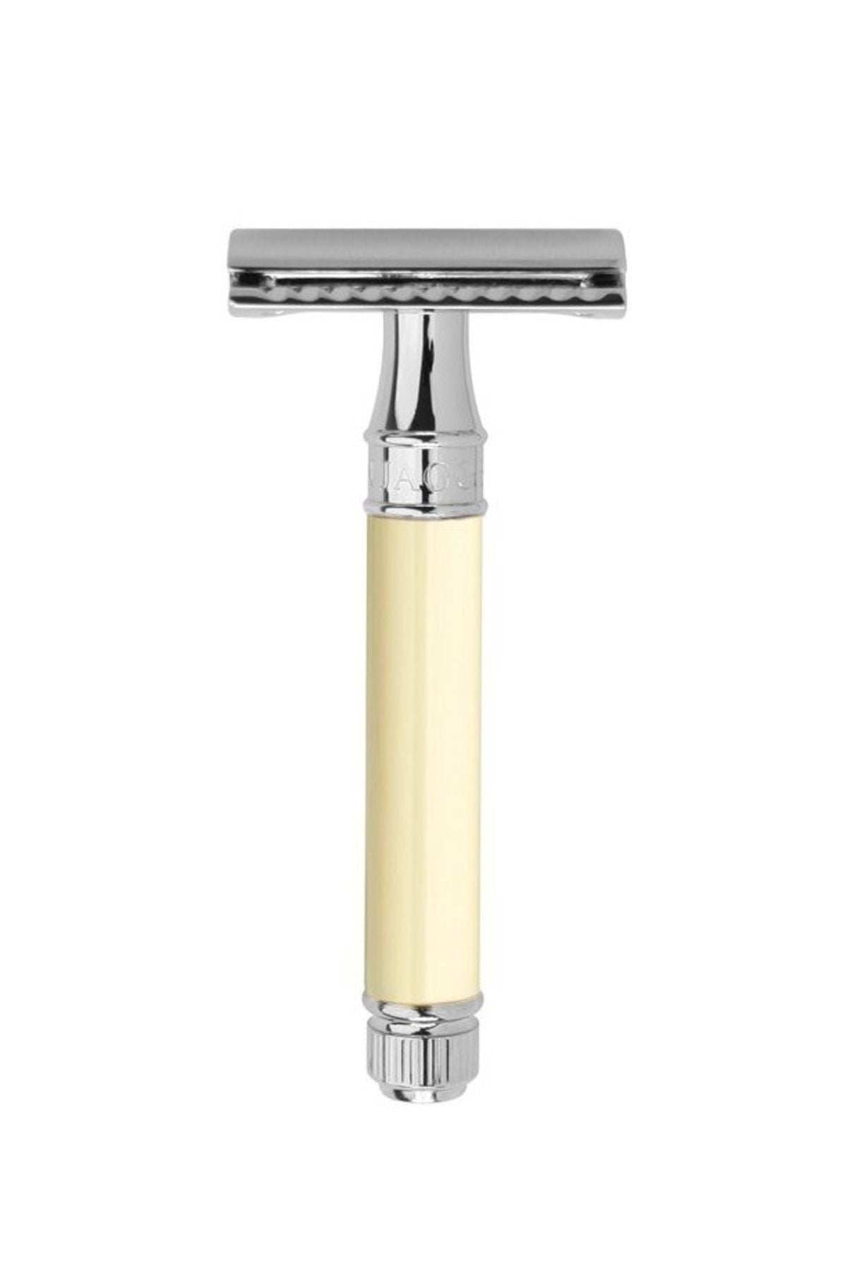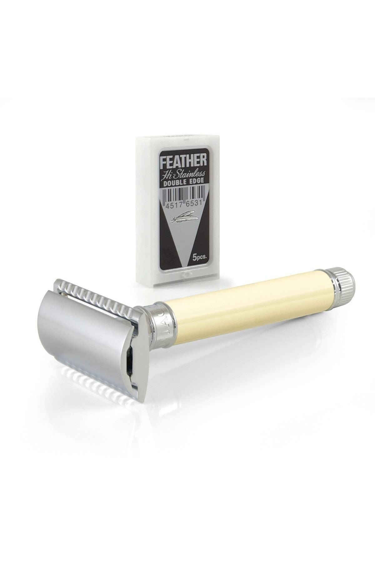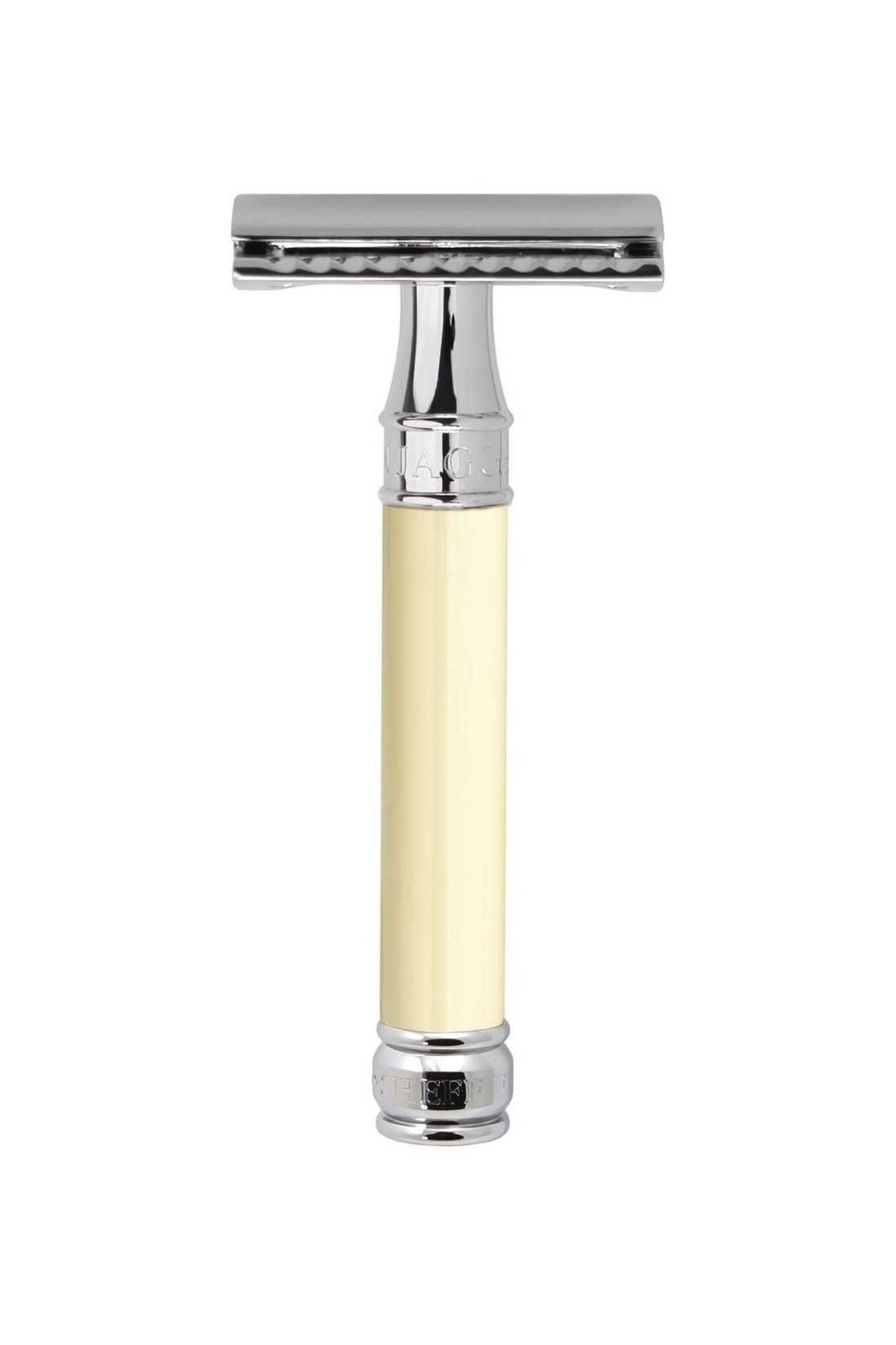Edwin Jagger DE87BL Fildişi Görünüm Saplı Jiletli Sakal Tıraş Makinesi Krom Kaplama Geleneksel Tıraş