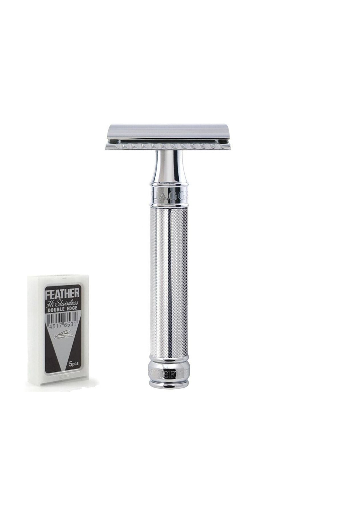 - Edwin Jagger DE89 KN14BL Tırtıklı Sap Krom Kaplama Saplı Jiletli Sakal Tıraş Makinesi Krom Kaplama Geleneksel Tıraş İngiliz Malı