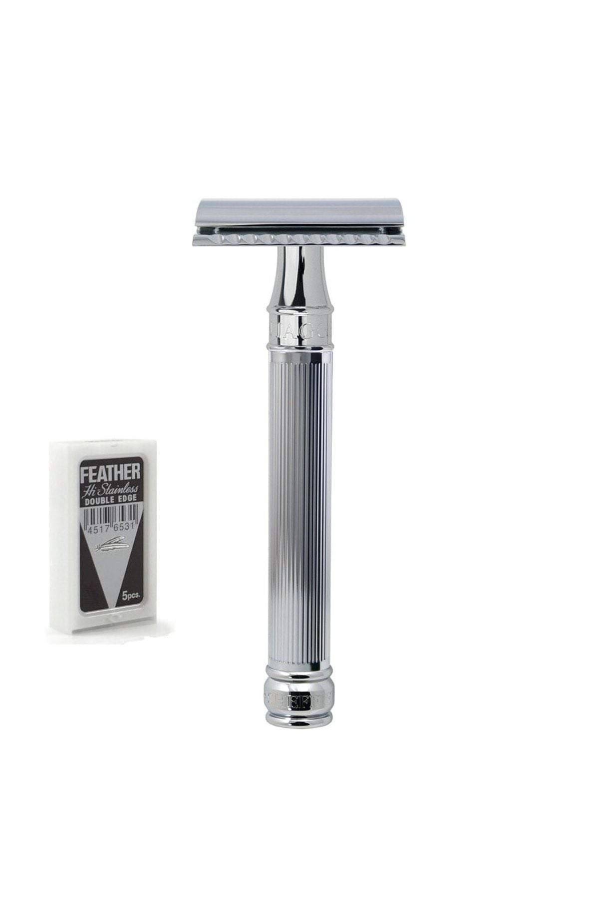 Edwin Jagger DEL89LI14BL Krom Kaplama Uzun Saplı Jiletli Sakal Tıraş Makinesi Krom Kaplama Klasik