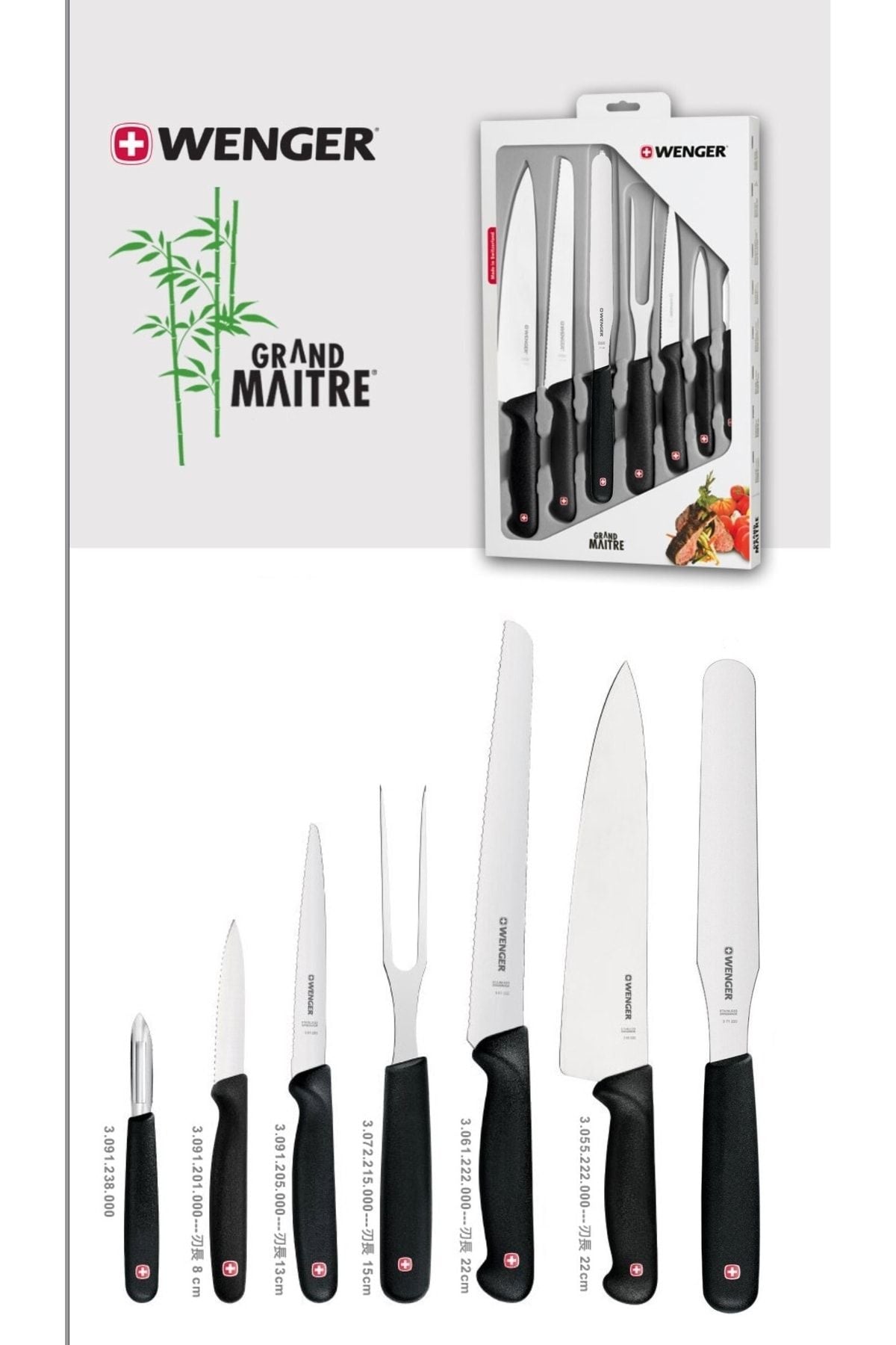 Grand Maitre 310132 Profesyonel Şef Bıçak Seti Paslanmaz Çelik Isviçre Malı Chef Bıçağı Set 7