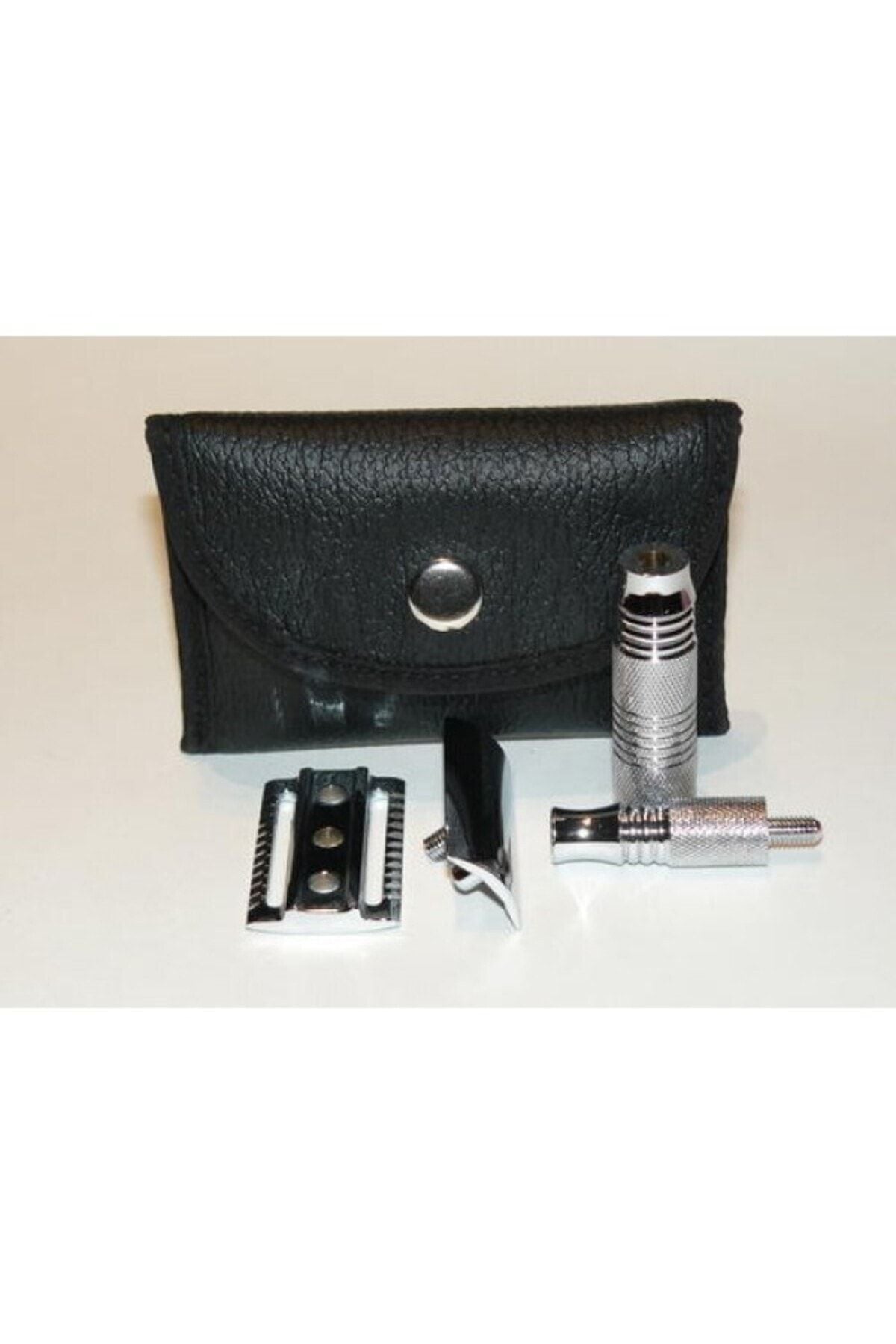 - 4 parçaya ayrılabilen tıraş makinesi çantasının içine rahatça yerleşebilmektedir. Deri seyahat kabının içinde ayrıca birkaç yaprak jilet taşıyabileceğiniz alan da bulunmaktadır.