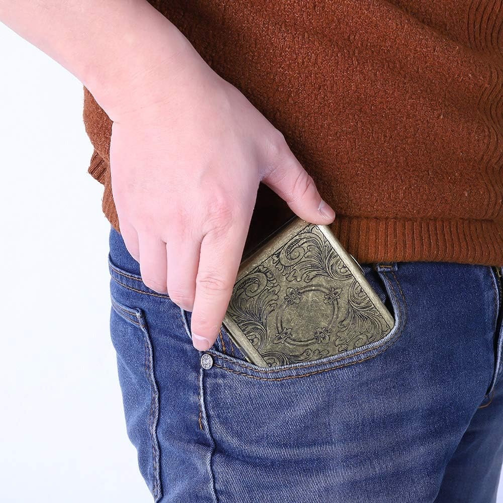 Kısa Sigara Tabakası Kutusu Retro Tasarım Çift Taraflı Tabla Saklama Kutusu ST-108 Metal 95 mm Kare