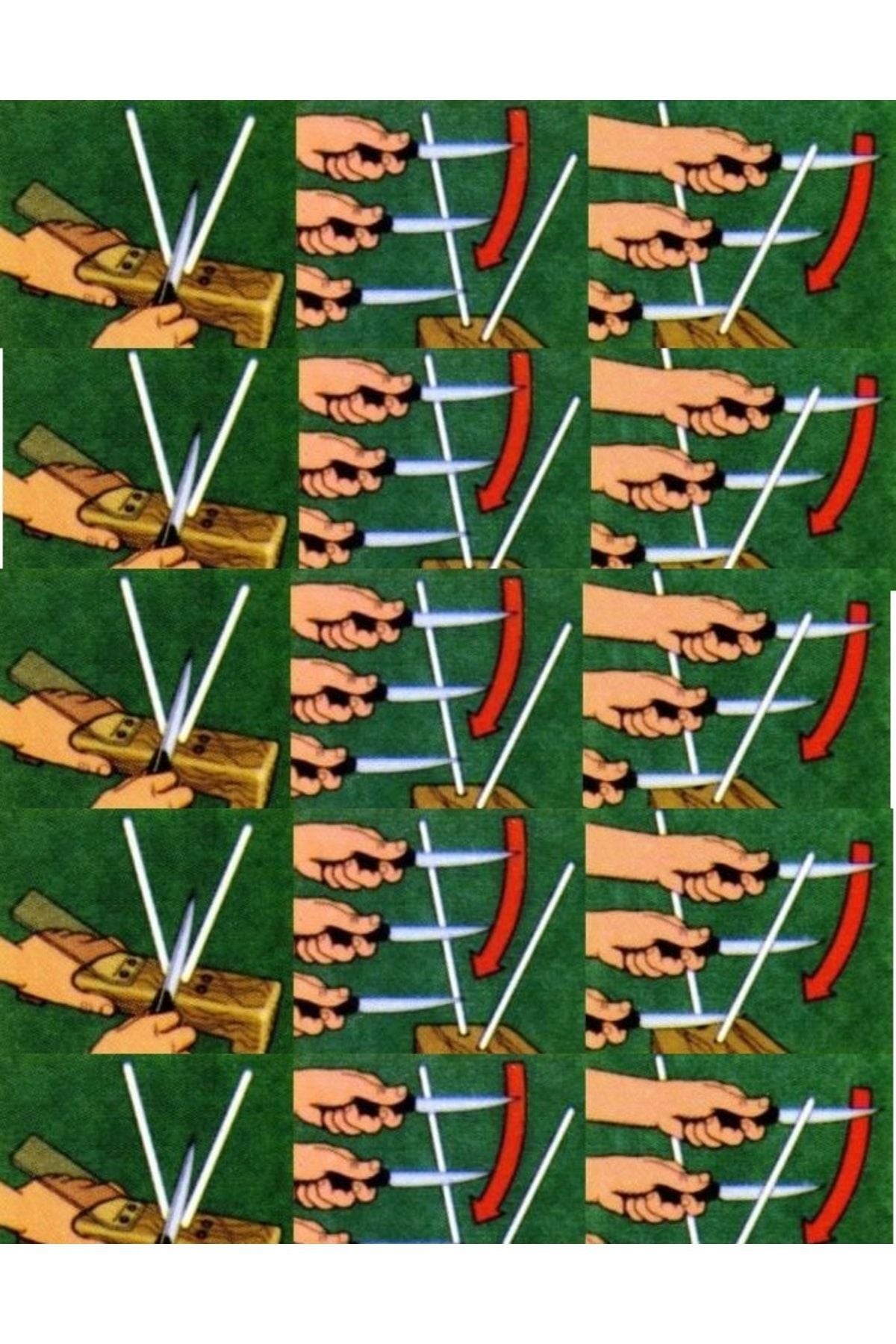 - Kutu içerisinde toplamda 4 Adet 23 cm uzunluğunda Masat çubuk bulunur bunlardan 2 tanesi orta kum (Orta - 600 kum) ve 2 tanesi ise ince kum (İnce - 1000 kum - bıçağınızı çok daha keskin bir hale getirir) ; Ürün üzerinde masat çubuklarını takmanız için belirlenmiş 4 adet kılavuz açıklar mevcuttur, bu sayede daha hassas bir bileme için kenarda 20 derecelik ve 25 derecelik için önceden ayarlanmış çubuk açılarıyla rahat bir bileme yapabilirsiniz.