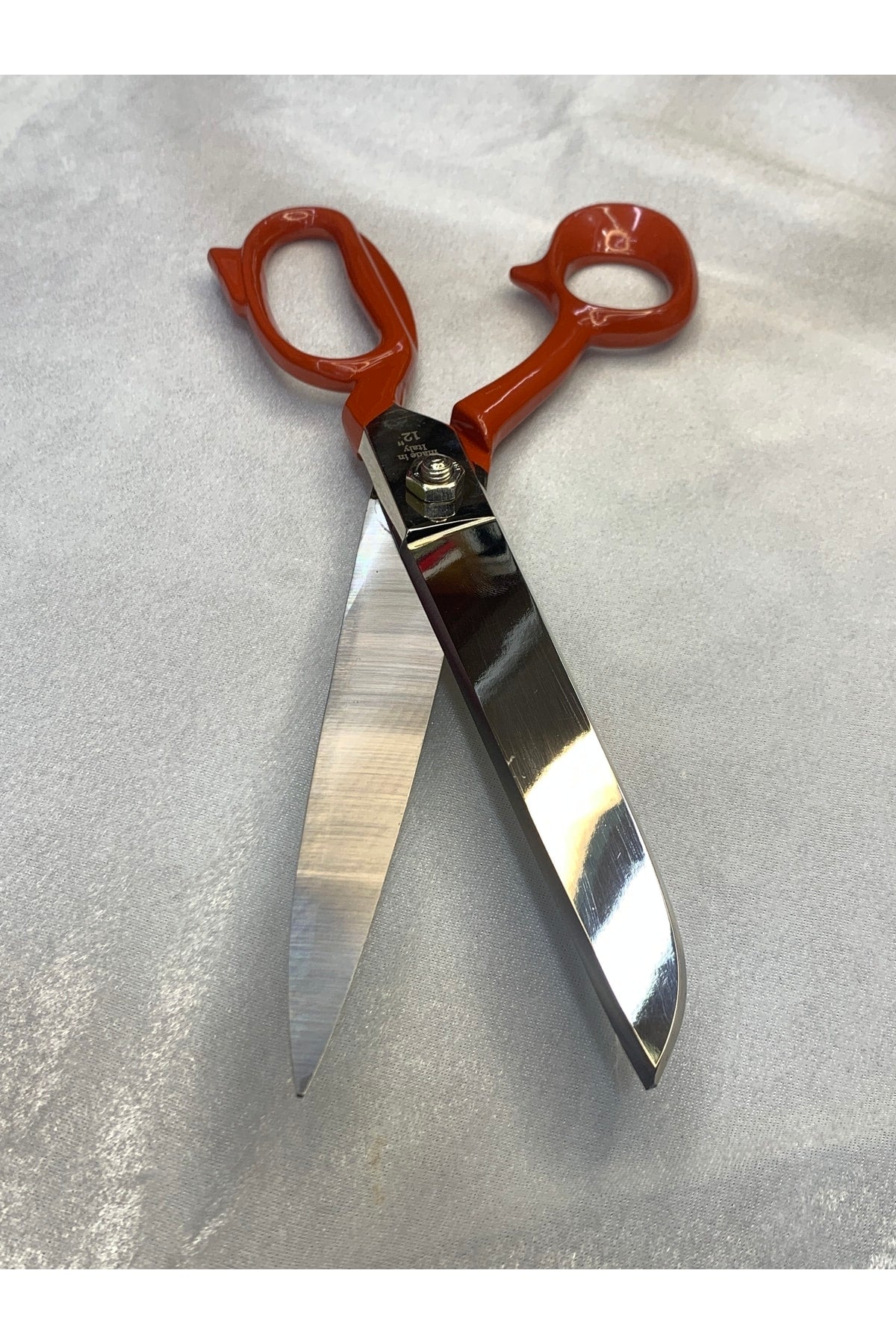 - Premax 12 inç Terzi Tekstil Makası Deri ve Kumaş Kot Keser Makas 31 cm Çelik Nikel Kaplama Büyük Kırmızı Saplı