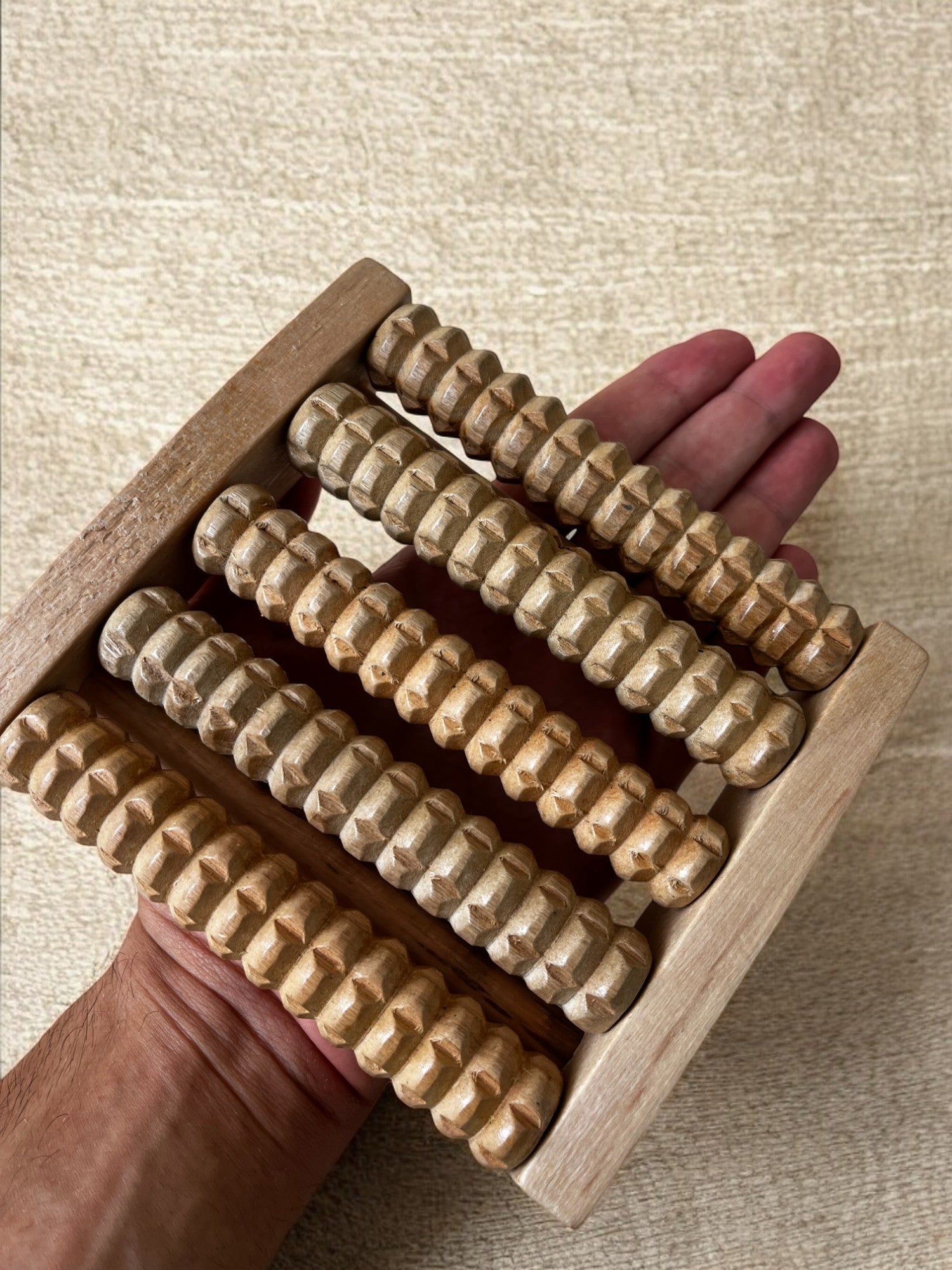 - Bu ahÅap ayak masaj rolörü, yorulan ayaklarınıza derinlemesine rahatlama saÄlar. Tek yapmanız gereken ayaklarınızı bu masaj aleti üzerinde gezdirmek.