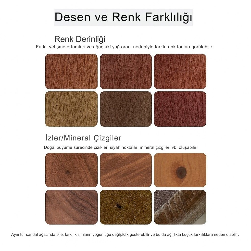 - Doğal Sandal ağacı gövde: Anti-statik özelliği sayesinde saçtaki elektriklenmeyi azaltır, doğal şıklık katar.