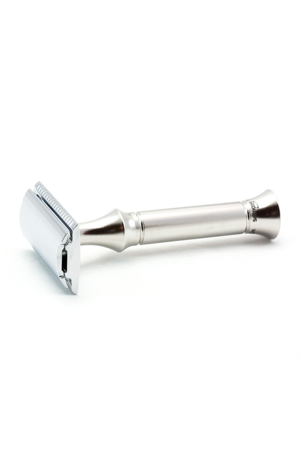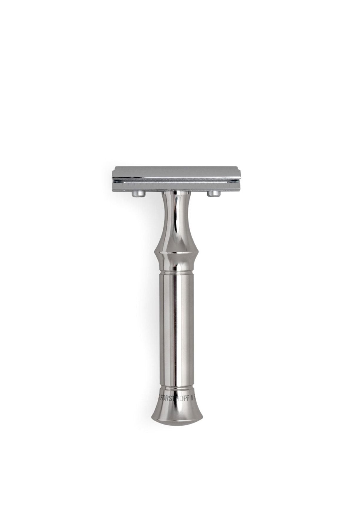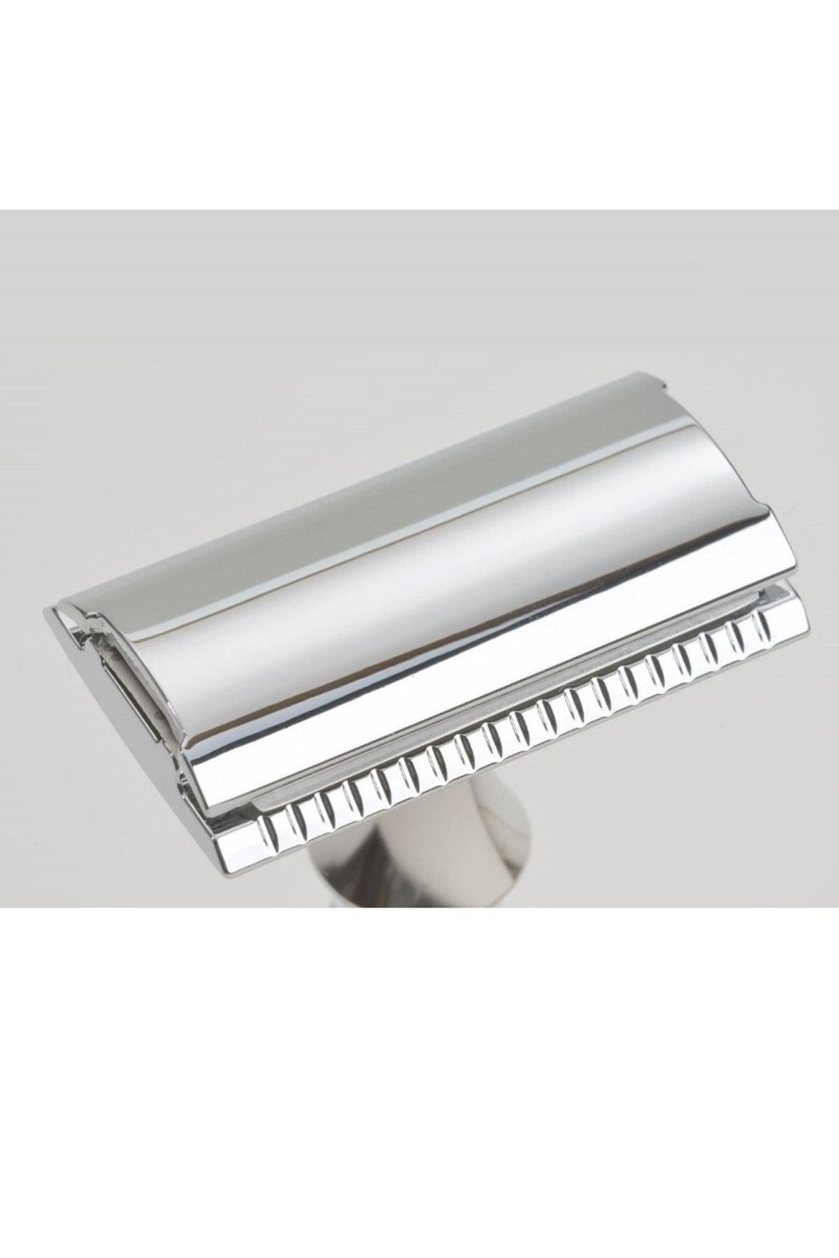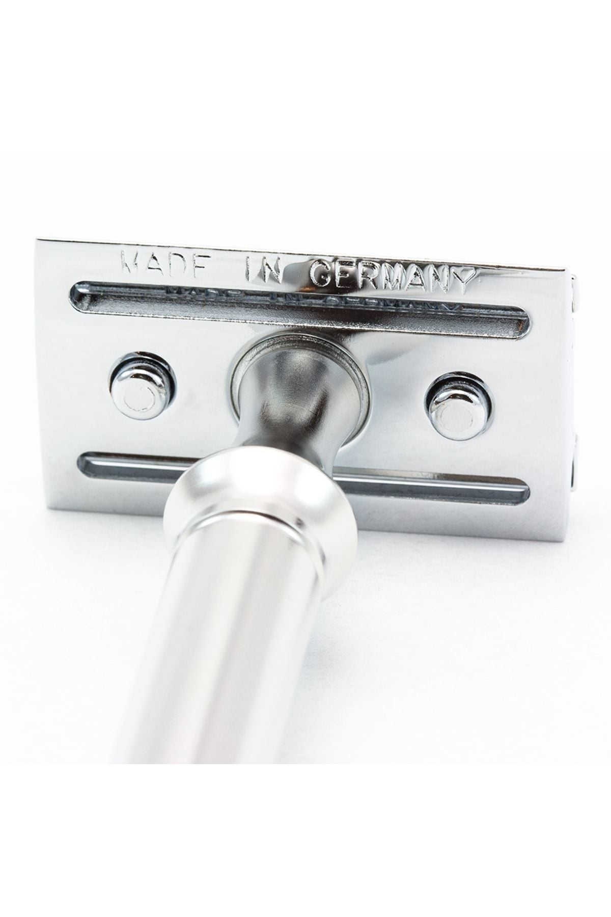 - 12 mm'lik kavrama kalınlığı rahat bir tutuş sağlar ve kullanım sırasında kaymayı önlemeye yardımcı olur. Sap malzemesi, yalnızca dayanıklı olmakla kalmayıp aynı zamanda tıraş makinesine zamansız ve zarif bir görünüm veren sağlam paslanmaz çeliktir. Tıraş bıçağı, istisnai işçiliği ve detaylara gösterdiği özen ile tanınan Almanya'da gururla üretilmiştir. Kafa malzemesi, uzun ömürlü ve korozyona dayanıklı bir kaplamayı garanti eden krom kaplı döküm çinkodur. Tıraş makinesi, yine Almanya'da yapılan ve ürünün bozulmamış durumda ulaşmasını sağlayan karton ekli bir kılıf içinde teslim edilir.