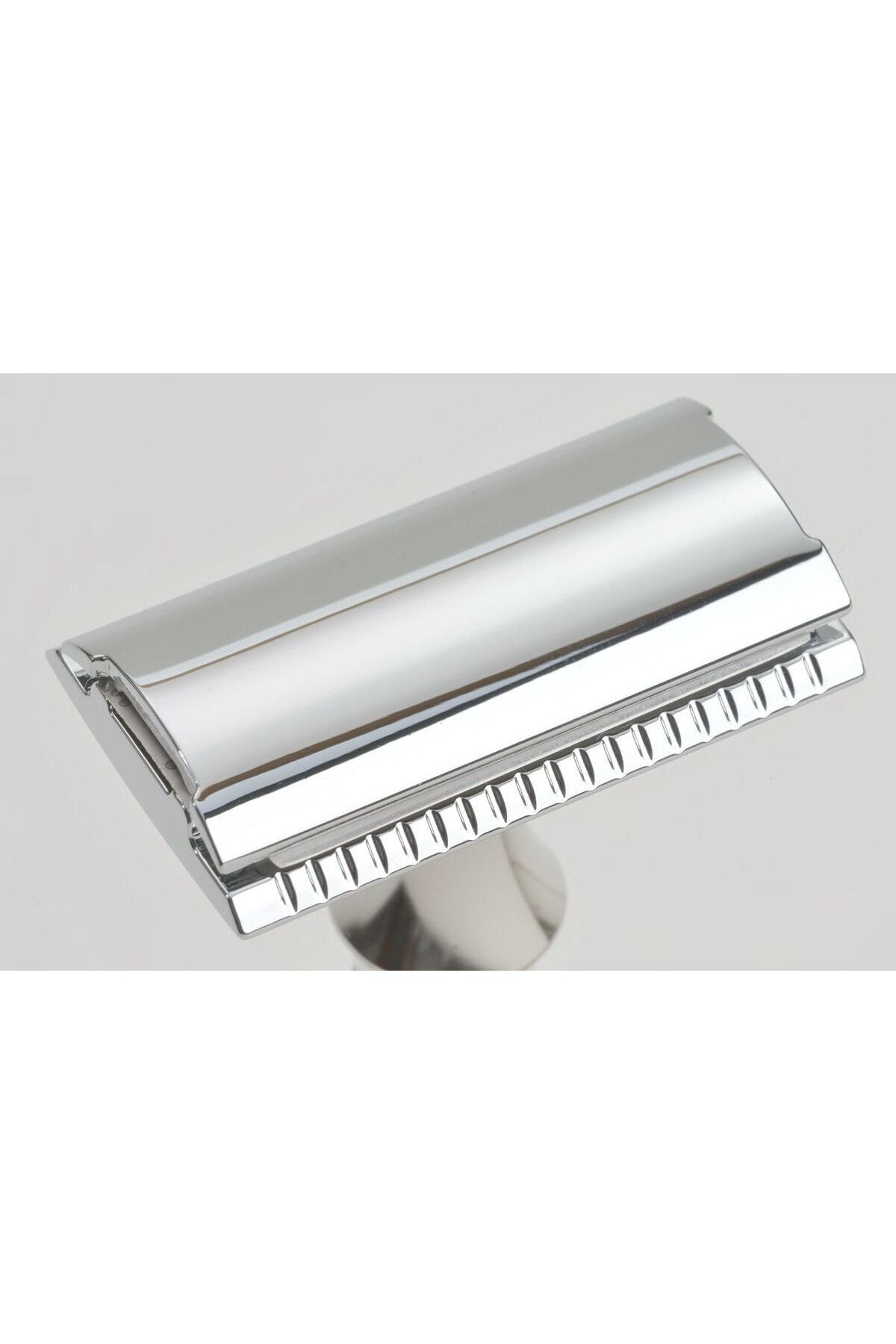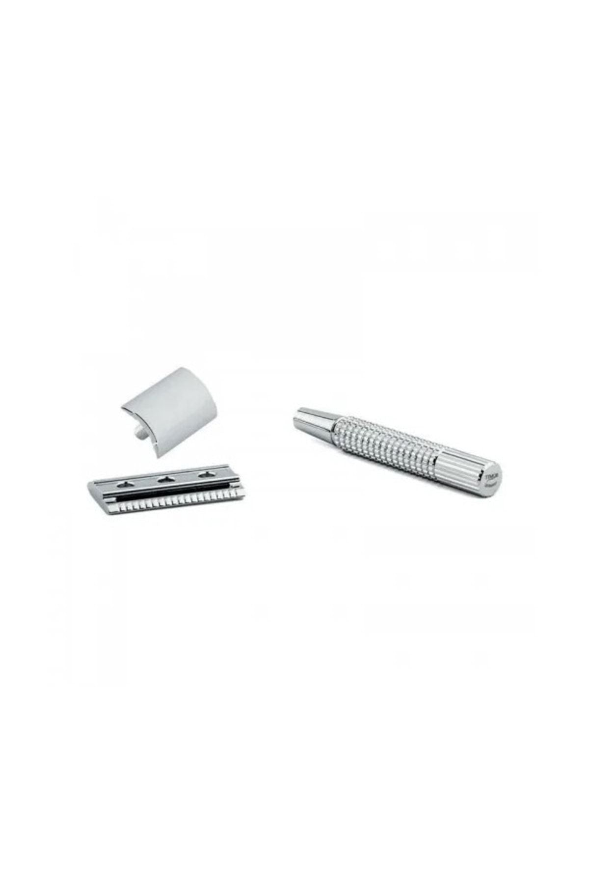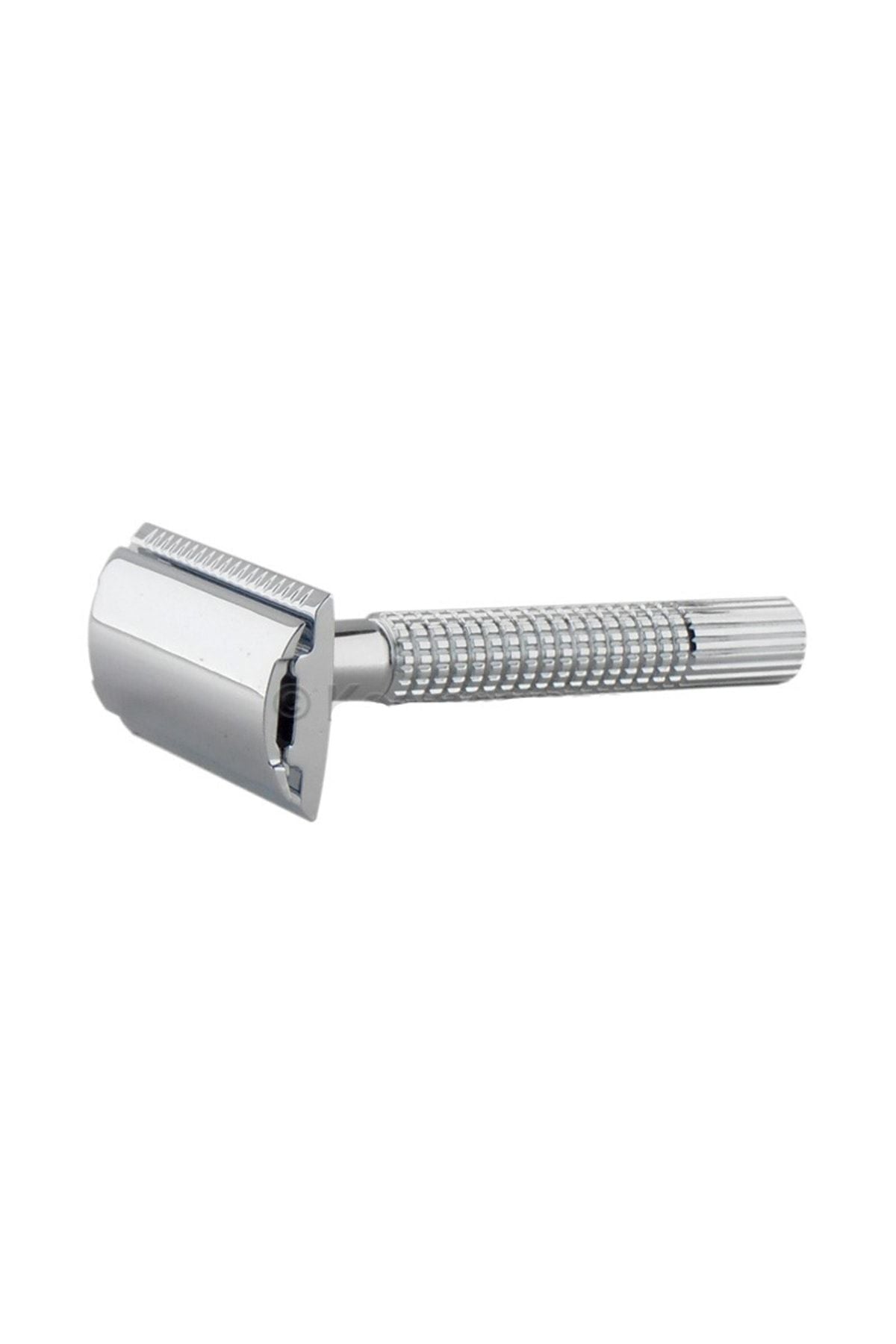 - Pure Shaver, sağlam, parlak krom kaplı pirinç saptan yapılmıştır; bu tıraş makinesi, kullanım sırasında optimum kontrol ve güvenlik için dokulu bir kavrama özelliğine sahiptir.