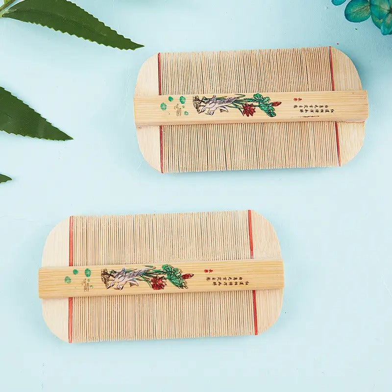 - Sorendy El Yapımı Bambu Çift Taraflı Ahşap Bit Tarağı Kepek Geleneksel Çin Tasarımı AT-132 - 11 cm